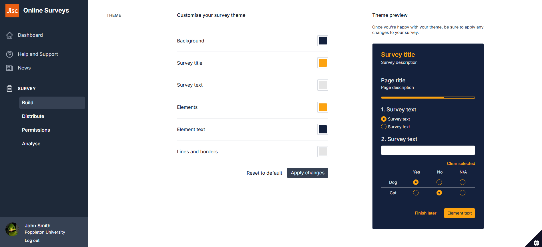 You can now customise the colours of your surveys to match your brand — or just give them a more personal touch.